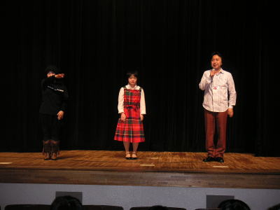 15:00、開演を告げる「ブ〜!」と言うブザーが再び会場内に鳴り響くと、ステージに『とっておきの音楽祭』の実行委員の丹野真衣さん(司会)、同じく実行委員で手話通訳の穀田千賀子さん、そして、映画「オハイエ!」のエグゼクティブ・プロデューサーであり、元・宮城県知事の浅野史郎さんが登場しました。